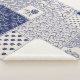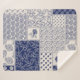 Indigo Blue Beige Floral Patchwork Sherpadecke