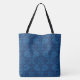 Ein schöner Tote Bag mit einem Imitat Lace Floral Muster in zwei Farbtönen von Indigo Blue. Als Teil der Posh & Painterly 'Indigo Lace' Kollektion können Sie diese Tote Tasche ganz einfach anpassen, indem Sie das Indigo Lace Musterfliesen drehen oder verkleinern und es wird jedem Bag-Stil entsprechen.