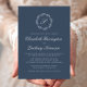 Dieses elegante Hochzeitseinladungs-Design verfügt über ein Monogramm mit weißem Schriftzeichen, das durch einen Botanischen Kranz auf indigoblauem Hintergrund umgeben ist. Die Namen werden in einem weißen Skript angezeigt, wobei die Erholung des Textes im klassischen Serif-Schriftart liegt. Die Rückseite der Karte ist solide indigo.