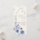 Mit dieser rustikalen Hochzeitskarte mit charmantem Wildblume-Design laden wir Sie ein, Ihren besonderen Tag zu feiern. Das zarte monotonblaue Set blüht vor einem weichen, strukturierten Hintergrund und schafft einen eleganten, aber schlichten Look, der sich perfekt für naturlich inspiriert Hochzeiten eignet. Diese Karte des Hochzeitsprogramms vereint die Essenz rustikaler Romantik, natürliche Schönheit mit zeitlosem Stil. Ideal für Hochzeiten im Freien, im Garten oder auf dem Land. Passen Sie Ihre Daten an, um eine so einzigartige Hochzeitskarte wie Ihre Liebe zu erstellen.