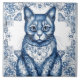 Das Kunstwerk zeigt ein aufwändig gestaltetes rustikales Indigofliesen mit einer majestätischen Katze. Die Katze ist mit eleganten Blumenmustern geschmückt, die eine Mischung aus Kunst und Handwerk zeigen und das reiche Erbe der Keramik-Fliesen-Dekoration unterstreichen.