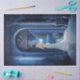 Extravagantes Indigo Blue Imperial Gebäude, wunderschönes elegantes Damenportrait, stehend unter einer gewölbten Tür im Mondlicht Digital-und Mixed-Media-Kunstwerk.