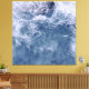Indigo Ocean Foaming Sea Water, blauer Himmel und Vögel fliegen. Ich malte es aus einem alten Foto mit Aquarell, Filtern und Effekten.