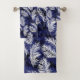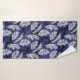 Weiße Blätter aus Palmen auf indigoblauem Hintergrund, mit blauen Palmenfronten geschichtet. Ideal für asiatische Zimmer mit Themen wie Hütte oder Strand.