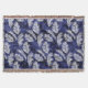 Weiße Blätter aus Palmen auf indigoblauem Hintergrund, mit blauen Palmenfronten geschichtet.