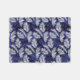 Weiße indigofarbene Blätter aus Palmen auf indigoblauem Hintergrund mit blauen Palmen.