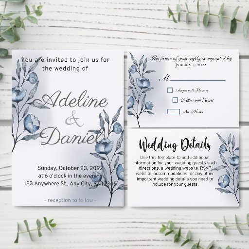 Announce your special day with these Indigo Romance Wedding Save the Date Cards, featuring delicate blue watercolor florals and a serene, modern layout that captures effortless elegance. The soft gradient backdrop paired with refined script and serif typography creates a timeless, romantic aesthetic that sets the perfect tone for your celebration. Ideal for coastal, garden, romantic, or contemporary weddings, these cards coordinate seamlessly with the full Indigo Romance suite, ensuring a beautifully cohesive first impression for your guests.