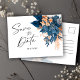 Indigo Rust Moderne Blumenhochzeit rettet das Datu Ankündigungspostkarte