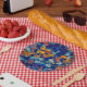 Indigomuster-Herbstlaub wirbeln Pappteller