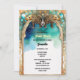 Ein atemberaubender Aquarellhintergrund hat einen opulenten Gewölberahmen um einen streaky blauen und weißen Hintergrund. Der Rahmen hat zarte verzierte Edelsteine in verschiedenen Blautönen, Elfenbein und Beige. Zwei trendige, goldbraune Elefanten, die mit Henna geschmückt sind, sind an der Spitze des Rahmens von hinten stehend. Sie sind durch verworrene Edelsteine geteilt, die mit Diamantendetails gekrönt sind. Unter den Elefanten erscheinen schwarze Vorlagen für Ihre personalisierte Formulierung. Die Rückseite hat das gleiche Design und zusätzliche Vorlagen für zusätzliche Informationen, die Sie gewollt können, um Ihren Freunden und Ihrer Familie zur Verfügung zu stellen. Wenn diese Vorlage nicht erforderlich ist, löschen Sie einfach den Text. Dieses elegante, königliche und königliche Design ist ideal für jedes traditionelle Hindu-Brautparty, ethnisch-asiatische Feiern oder Hindi-Veranstaltungen.