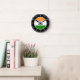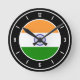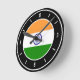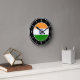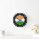 Indien Flag Elegant Round Clock mit der indischen Fahne in der Mitte und schönen weißen Uhrennummern am Taktrand. Ein zauberhafter schwarzer Hintergrund mit weißen ovalen Elementen vervollständigt das Design und betont die Eleganz. Die wunderschöne Kombination aus Schwarz und Weiß mit der geschickten Integration der nationalen Flaggenfarben machen diese Uhr zum perfekten Geschenk und zum großartigen Stück an der Wand. © 2022 CountriesOfTheWorld