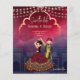 Die indische Hochzeit bewahrt das Datum niedliches Brautpaar, dunkelblauer Maroon Hintergrund mit Feenlicht und tanzende indische Bridal Paar Save the Date Karte.