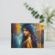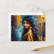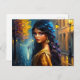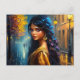 Indische Motive. Indianermädchen mit schwarz und blau langem Haar und blauen Augen vor dem Hintergrund einer Abend City Street. Eine originelle Idee, die auf die Zuhause ausgerichtet ist, ist auch für das Büro geeignet.