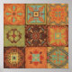 © Pela Studio / Wilder Apple. Dieses gemusterte Bild erinnert an Indien. Die quadratischen Pflaster haben verschiedene Formen in verschiedenen Farben.