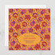 Blumengeburt Postkarte. Indisches Blumenmuster. Hellrot, gelb und lila.