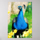Schließung des indischen Pfaus (Pavo cristatus) unter Narzissi-Blume