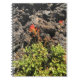 Hellrote indische Paintbrush-Blume im Lava Cast Forest in Central Oregon. Die kühnen Farben heben sich vom Lavastein ab. Foto nahm Sommer 2018.