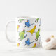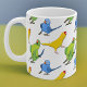 Adorable Indian Ringneck Parakets tanzen spielerisch über Ihre Kaffeemaschine in einem fröhlichen Tasse, das die gelben, blauen und grünen Farbvarianten beinhaltet. Es ist das perfekte kleine Geschenk für Ihren Lieblings-Papageienbesitzer und Vogelliebhaber!