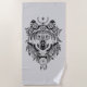 Dieses Ausrüstungsbeschreibungen ein Porträt eines Wolfs, der Stammes- Federn und ein dreamcatcher trägt.