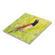 Keramik Tile mit bunten Vogelskizzen. Indisches Paradies Flycatcher, tropischer Vogel auf einem Baumarm sitzend, bunt gelb grüne Blätter und Blume als Hintergrund. Farbpalette: Chartreuse, Apple Green, Primrose and Pear Yellow, Blaze Orange, Black Acrylic Markers and ink on paper, 2019. www.clipsocallipso.ar #flycatcher #birds #markersketch #birdart #tropicalbirds #chartreuse #GreenGelb #clipsocallipso #ceramictile #bath #mänomdecor #Badekitomideas #Dekoration #zazzle #zazzlemade
