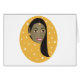 hübsches indisches Mädchen mit Orangen-/Goldhintergrund. Groß für Personifizierung, sehen Sie viele anderen Gesichter mit verschiedenen Blicken.