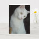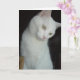 Hübsche weiße Katze sieht pensiv aus. Sie können den Text anpassen. Tatsächlich denkt sie darüber nach, wie sie das Haus übernehmen kann.