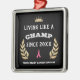 Leben wie ein Champ seit YYYY, stolze Überlebende von Brustkrebs | Rosa Band, goldfarbene Lorbeerfische Blätter und Kronen | Vollständig anpassbarer Text für dunklen Hintergrund