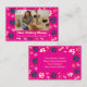 Diese Visitenkarte ist für Besitzer von Katterie- und Boardings-Haustieren konzipiert, die gewollt haben, eine persönliche Touch hinzuzufügen. Die Karte verfügt über ein großes, individualisierbares Foto, mit dem Sie Ihre Katterie, Mitarbeiter oder Kätzchen präsentieren können. Das Design bietet ein spielerisches Muster aus farbenfrohen Pfotendrucken und Knochen und schafft so ein warmes und freundliches Ambiente. Es ist vollständig anpassbar, mit dedizierten Plätzen für den Namen, die Telefonnummer, die Website, E-Mail und soziale Medien. Diese vielseitige Karte ist ideal, um sich mit Kunden zu verbinden und Ihre Leidenschaft für Katzen zu teilen.