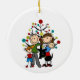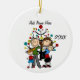 Ein niedliches, lustiges Keramik-Ornament mit einem Strichmännchen Papa, Mama, Kleinkind, Baby Junge und Schwarzfamilienhund. Sie können einen Namen und ein Datum hinzufügen.