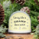Leben wie ein Champ seit YYYY, Lungenkrebs stolze Überlebende | Weißband, Silbereffektsterne | vollständig anpassbarer Text und Hintergrund