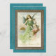Schöne, einzigartige, klassische, trendige, hübsche und dekorative antike Weihnachtsgrüßkarte auf einem Vintagen aquamarin blauen Hintergrund, mit dem Bild von Engeln und Blume, und "A Merry Christmas to You" Text. Mit herzlicher Gedicht-Nachricht auf der Rückseite der Karte, die mit einem persönlichen Text angepasst oder personalisiert werden kann und mit Ihrem Familiennamen oder individuellen Familiennamen Ihrer Wahl signiert wird.