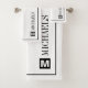 Individuelle Name monogramm modernes schicke Bad Handtuch Set. Luxuriöse mit Monogramm Badezimmertücher in Schwarz und Weiß. Stilvolle Typografie druckt Design für ihn oder sie. Elegante Wohngestaltung für Bad, WC, Gästehaus, Hotel, Gästezimmer, Kabine etc. Benutzerdefinierte Hintergrundfarbe optional. Kleines Waschlappen, Handtuch und großes Badetuch. Einzigartig hochwertige gedruckte Hauswärme Geschenkidee für Freunde, Familie, Hochzeitspaar, Neuvermählte, mehr und mehr etc. Neues Zuhause-Zubehör mit Anfangsbuchstaben. Passende Kombination für luxuriöse Inneneinrichtung. Fügen Sie Ihren eigenen Nachnamen und einen Monogramm-Buchstaben hinzu. Erstellen Sie seine und ihre Geschenke.