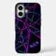 Stell dich mit dieser edlen, anpassbaren, hochgradig geometrischen iPhone-Hülle heraus! Mit einem schwarzen Hintergrund mit leuchtendem E-Rosa, Blau und lila Rissen sorgt diese strapazierfähige und stilvolle Handy-Cover für eine kühne, futuristische Touch. Ideal für Technikfreunde und Trendsetter!