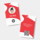 Dieses kundenspezifische Business Creative Modern Blob Bio Formen Mitarbeitername Abzeichen mit Foto, Scan Qr Code oder Scan Bar Code und Business Logo. Ein einfaches Business-Design mit rundem Foto, in Rot-Weiß-Farbtönen, vollständig anpassbar in Vorder- und Rücken-Größen, serifenlosen Schriftart und einem beruflichen und klaren Look. Erhältlich mit Lanyard, Metallklammer oder mit Retraktikett. Keine Mindestbestellung.