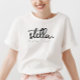 Modernes, elegantes und einfaches Hemddesign mit Vorlagenfeldern für den Namen in einer schönen Schrift-Typografie und Ihrer Tagline. Sie können die Farben ändern, Elemente verschieben und verändern, um sie an das Anpassungstool anzupassen. Branding ist am hübschsten. Teil einer Kollektion mit Aufklebern, Hemden und mehr. ©Marisu Valencia