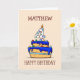 Der Name erscheint oben auf dem süß-blauen Kuchen auf der Vorderseite dieser Karte. Es ist für jeden Jungen, der einen 4. Geburtstag feiern wird, anpassbar. Mach seinen 4. Geburtstag süßer als es schon ist.