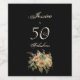 50 & Fabulous Geburtstag Elegantes Weinetikett. Trendy. Custom. Name. Sonnenblume Bouquet. Schwarz.