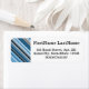 Dieses Adressetikett zeichnet sich durch Streifen in verschiedenen Blau- und Grautönen aus. Es verfügt über einen personalisierten Namen, einen Familiennamen oder einen Firmennamen, der über eine personalisierte Postanschrift hinausgeht.