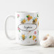 Niedliche Hummeln und Honigmuster Tasse. Dieses Design bringt Sie in eine gute Stimmung und das Lächeln kommt heraus. Ideal für einen Tee mit Liebhabern von Honig. Anpassen mit zwei Textbereichen, um Ihren eigenen Namen und Text zu setzen. Holen Sie sich das für sich selbst oder als nettes und persönliches Geschenk.
