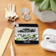 Dieser Schlüsselanhänger wird in schwarzer Farbe mit einem Auto-Rennwagen-Print-Design mit einem benutzerdefinierten Beispielnamen angezeigt. Passen Sie dieses Element an, und ändern Sie den Beispielnamen in Ihren Namen. Börsenbild vecteezy.com