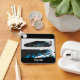 Dieser Schlüsselanhänger wird in schwarzer Farbe mit einem Auto-Rennwagen-Print-Design mit einem benutzerdefinierten Beispielnamen angezeigt. Passen Sie dieses Element an, und ändern Sie den Beispielnamen in Ihren Namen. Börsenbild vecteezy.com