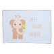 Baby Girl Pillowcase mit individuelle Name und süßen Träumen, die sich auf der Vorderseite wünschen und auf der Rückseite liebende Worte ("Du bist so geliebt"). Babyelefant lächelt und gibt Blume und rosa Birdie tanzt auf seinem Kopf. Schokolade, blau, rosa, gelb, grün. Sehr schön und niedlich.