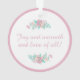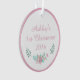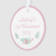 Individuelle Name & Text Baby's 1. Weihnachtsblumenschmuck, kehrte um. Individuelle Name auf der Vorderseite und Text auf der Rückseite. Die lila, grünen und minzfarbenen Farben des Blumenkranzes und der Pastellfarben.