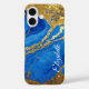 Individuelle Name Blauer Marmor und Goldleaf Case-Mate iPhone Hülle
