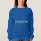 Das ist ein Royal Blue Women's Basic Sweatshirt. Im Komfort dieses klassischen Pullovers können Sie sich für sportliche Aktivitäten im Freien begeistern. Es ist zugleich warm und strapazierfähig und ein wahres Basis-Kleidungsstück das sich lange bewährt. Wählen Sie ein Design aus Zazzle's Marktplatz oder passen Sie es an, um es zu Ihrem eigenen zu machen! Das königsblaue Sweatshirt ist mit dem Namen einer Frau, Christine, personalisiert. Der Name ist eine Chambray Comfort Farbe hellblau Farbe. Der Name Christine ist vorne und hinten im Sweatshirt. Sie können den Namen ersetzen, indem Sie auf den Link Personalisieren klicken. Das Sweatshirt passt sich der Größe an. Das Sweatshirt ist eine Mischung aus Polyester aus Baumwolle. Das Sweatshirt ist mit Set-in-Ärmeln und Doppelnadelnähten, Armlöchern und Bottom-Band ausgestattet, um eine lange Haltbarkeit zu gewährleisten. Der Stoff wird importiert. Die Stoffpflege-Anweisungen sind maschinelle Waschen kalt und trocken niedrig.