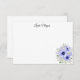 Note Card wird in Weiß mit einem schönen Blumendruck von Blume in der lila Farbe angezeigt. Angezeigt mit einem benutzerdefinierten Beispielnamen. Passen Sie diese Karte an, und ändern Sie den Beispielnamen in Ihren Namen. Die Umschläge beinhalteten das Archivbild freepik.com