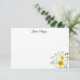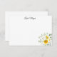 Die Note Card wird in Weiß mit einem schönen Blumendruck von Blume in Gelb- und Weißtönen gezeigt. Angezeigt mit einem benutzerdefinierten Beispielnamen. Passen Sie diese Karte an, und ändern Sie den Beispielnamen in Ihren Namen. Die Umschläge beinhalteten das Archivbild freepik.com