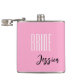 Die Maske für die Braut wird in rosa mit schwarz-weißem Text angezeigt und hat einen Beispielnamen. Passen Sie dieses Element an und ändern Sie den Beispielnamen in Ihren Namen. Sie können auch die Farben ändern, wenn Sie möchten.