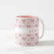 Sip hübsch! Diese elegante Tasse besticht durch Vintage Blumenmuster und farbenfrohe rosafarbene Bögen mit Ihrem individuelle Name, die sich ideal für ein zeitloses, personalisiertes Geschenk oder einen täglichen Tee- und Kaffeeservice eignen.