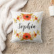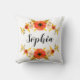 Kissen mit Korallenwasserfarbe auf weißem Hintergrund und anpassbarem Text.
